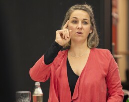 Klassische Bildungsorte sind ihr ein Gräuel, drum bildet sie gern Lehrer*innen zur kreativen Gestaltung des Schulunterrichts mit Theatermethoden fort und gründete vor vielen Jahren mit lieben Kolleg*innen den Verein Young Acting, ein Verein zur Förderung von Schauspiel für Kinder und Jugendlichen außerhalb von Schulen. Daraus, und aus ihrer Vorliebe mit ihren JugendTheaterProduktionen durch die Welt zu reisen und ein paar Auszeichnungen zu sammeln, entstanden Projekte wie Brucklinn – dem Internationalen Theaterfestival und Anfang 2025 das ‚junge theater innsbruck‘ – ein städtisches Theater für junges Publikum.